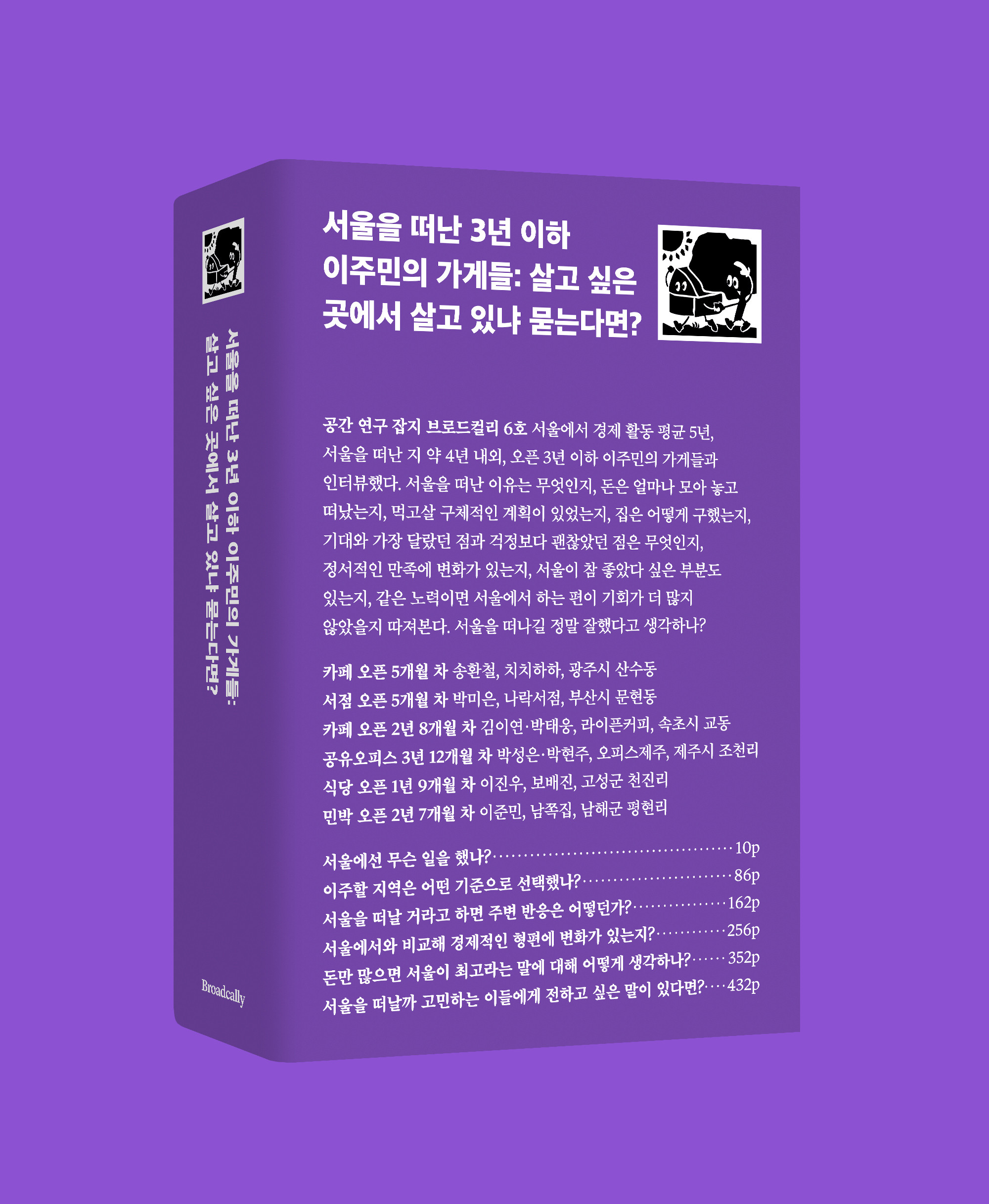 노력한다. 먹고사는 문제를 다루기 때문이다. 구체적인 금액, 이 일을 선택하는 데 든 비용, 매출 같은 것들을 묻는다. ‘나는 이러한 삶을 살았고, 그 결과 내가 가장 좋아하는 것을 찾았고, 그래서 가게를 열었다’는 식의 이야기가 참 많다. 그 자체로 좋은 콘텐츠다. 동기 부여도 되고 응원도 될 수 있다. 그런데 내 가게를 연다는 것은 경제 활동의 영역이고, 돈 문제이기도 하다. 일단 가게라는 공간 자체가 어떤 ‘부동산’을 차지하는 일이다.
