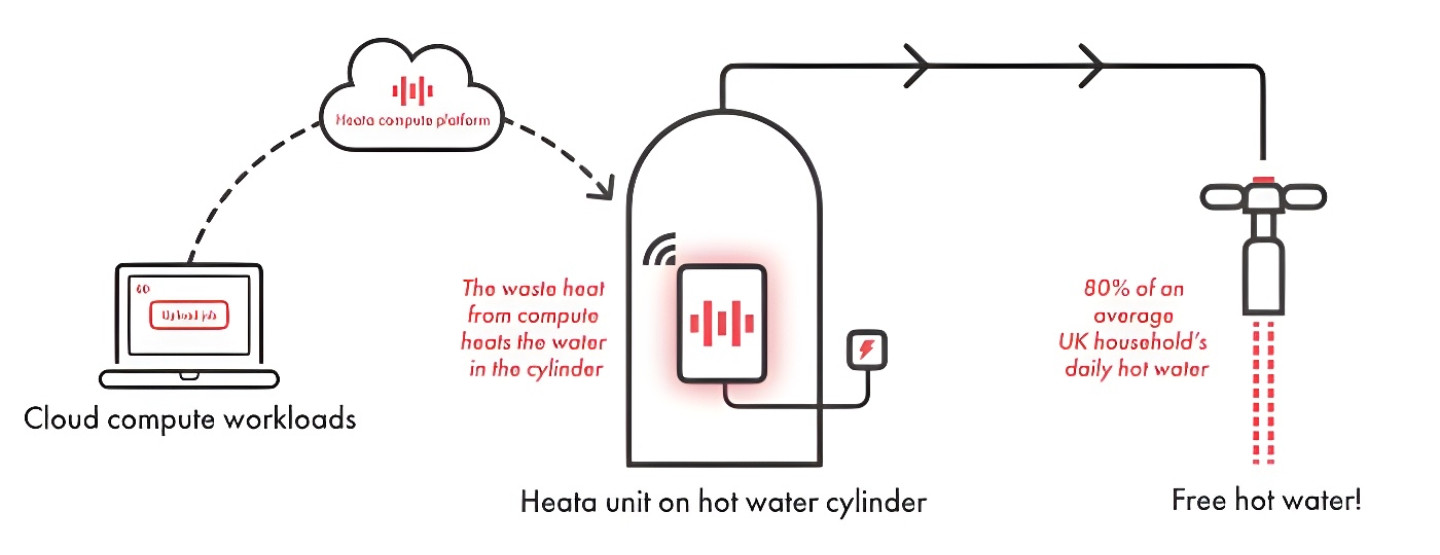 딥그린의 전신은 히트다. 일종의 소형 서버를 일반 가정집에 설치하고, 폐열을 사용해 무료로 온수를 데워 쓰는 방식이다. / 출처: Heats